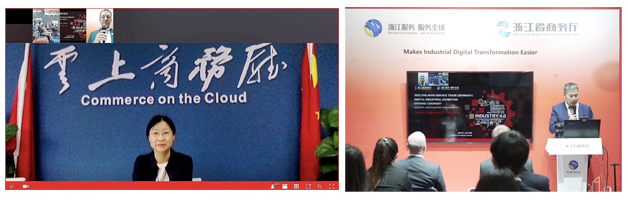 此次漢諾威工博會(huì),我司同阿里云、三維通信、舜云互聯(lián)、申昊科技等多家浙江知名企業(yè)共同亮相浙江省商務(wù)廳主辦的2022浙江服務(wù)貿(mào)易(德國(guó))數(shù)字工業(yè)展,向全世界展現(xiàn)“浙江服務(wù) 服務(wù)全球”的魅力。當(dāng)?shù)貢r(shí)間5月30日上午,浙江省駐德國(guó)商務(wù)代表處主任張漢東在現(xiàn)場(chǎng)主持工業(yè)展開幕式,浙江省商務(wù)廳服務(wù)貿(mào)易處處長(zhǎng)莊謹(jǐn)在線出席開幕式。